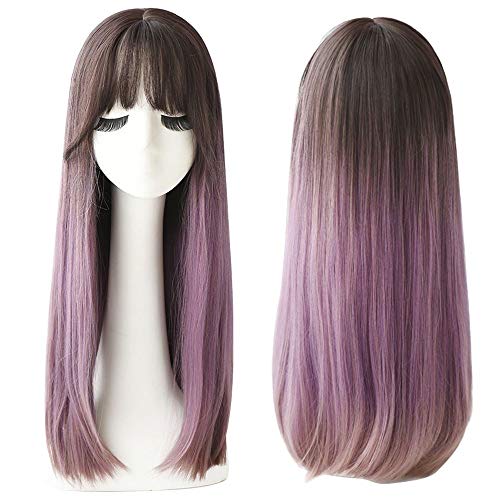 DILLARDS - باروكة شعر طويلة للنساء مفرودة بغرة بتصميم مستوحى من شخصية لوليتا، شعر صناعي أنيق مقاوم للحرارة للحفلات التنكرية من ديلاردس (لون: S 22 10 85 اتش ار، الطول الممتد: 61 سم.