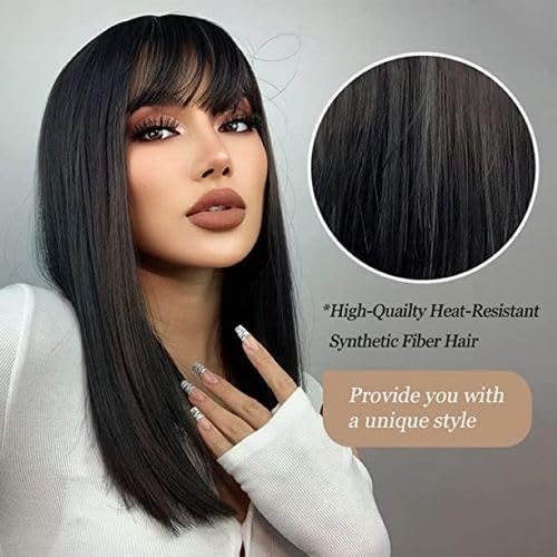 - باروكة بشعر مستعار صناعي طويل ناعم للنساء بلون أسود