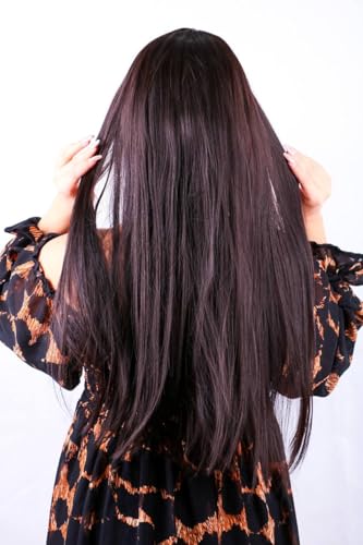 - مزايا التسريحة: تصميم غرة جانبية بلون أسود طبيعي مع تدرجات بنية دقيقة للمسة من الأبعاد والعمق.
