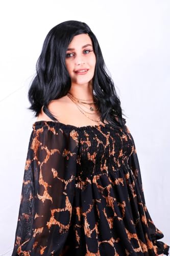 DILLARDS - باروكة شعر صناعية طويلة مموجة بلون أسود مقاومة للحرارة بمظهر طبيعي مع قصة طبقات من ديلاردز