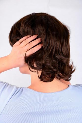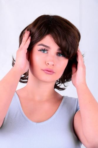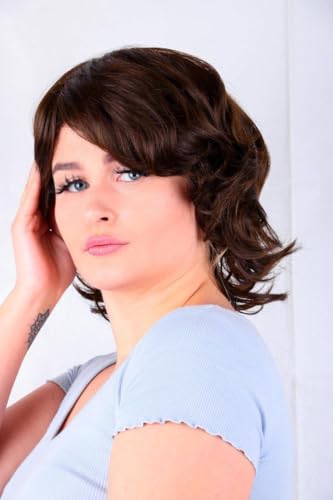 DILLARDS - ديلاردز شعر مستعار صناعي مموج بني فاخر، نمط طبقات متوسط الطول، شعر طبيعي المظهر مع غرة جانبية، الياف مقاومة للحرارة للارتداء اليومي
