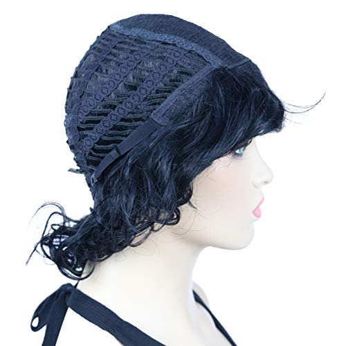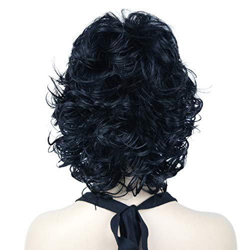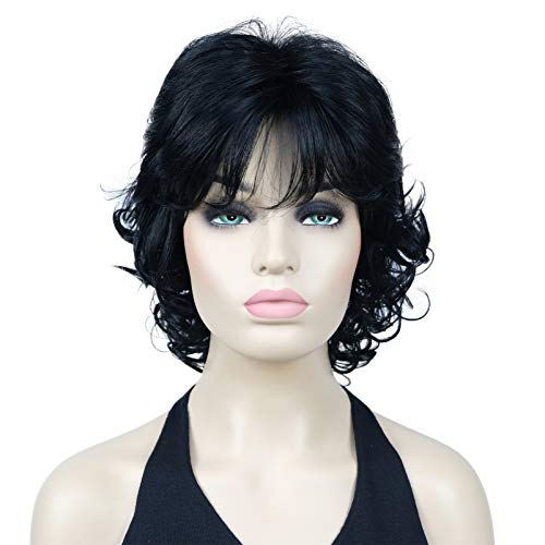 - ديلاردز شعر مستعار صناعي قصير مموج ومنفوش مع غرة للنساء من ليديل، لون اسود
