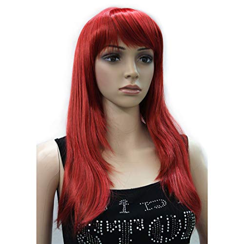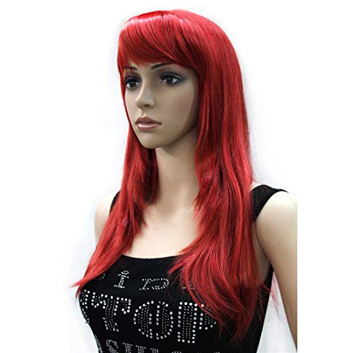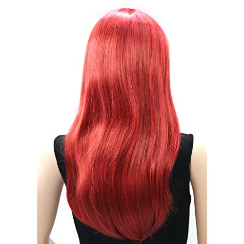 DILLARDS - ديلاردز شعر مستعار صناعي طويل مفرود للحفلات التنكرية والهالوين للنساء من ليديل، لون احمر