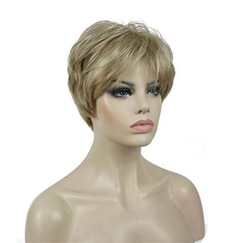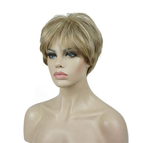 - ديلاردز شعر مستعار صناعي قصير مفرود بطبقات مع غرة شعر اشقر للنساء من ليديل