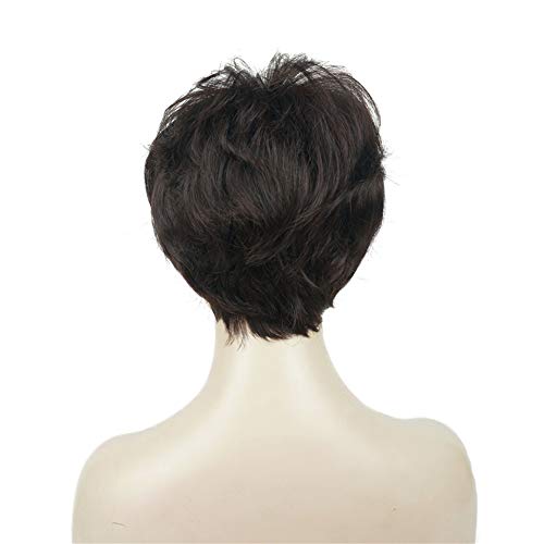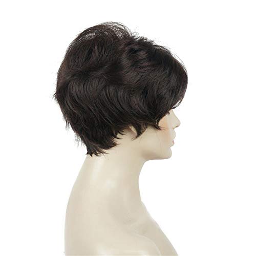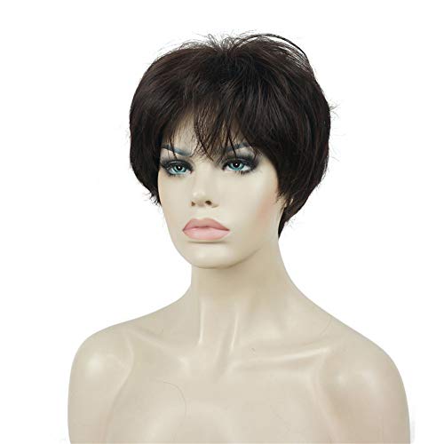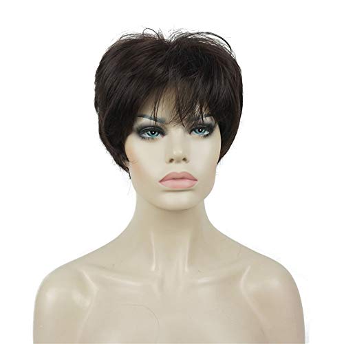 - ديلاردز باروكة للنساء من ليديل، شعر مستعار صناعي قصير مفرود بطبقات مع غرة شعر بني