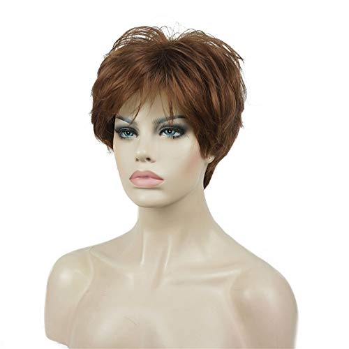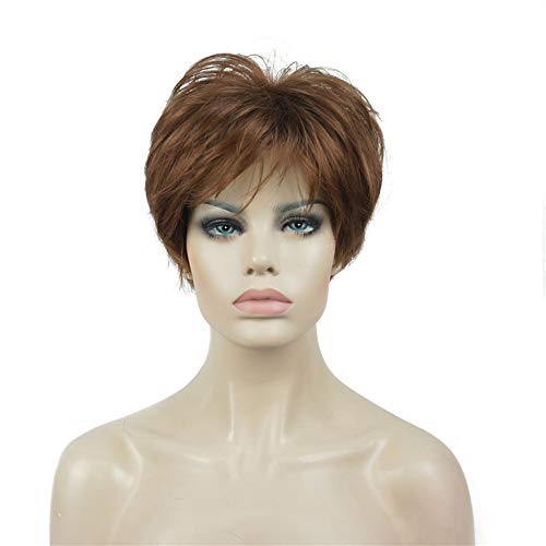 - باروكات للنساء، باروكة بشعر متسعار قصير مفرود بقصة متدرجة الطبقات بلون كستنائي متوسط من ديلاردز