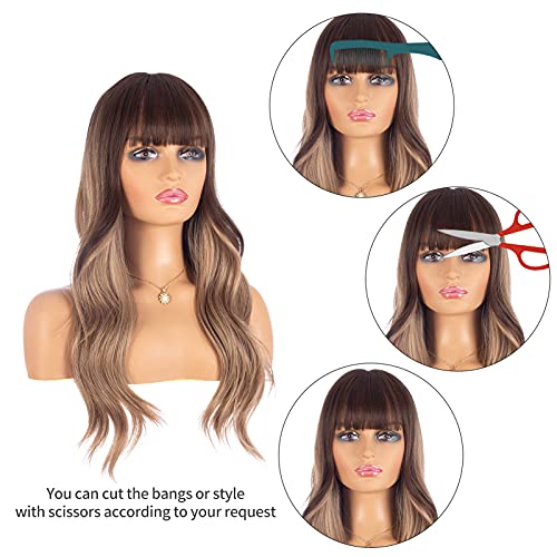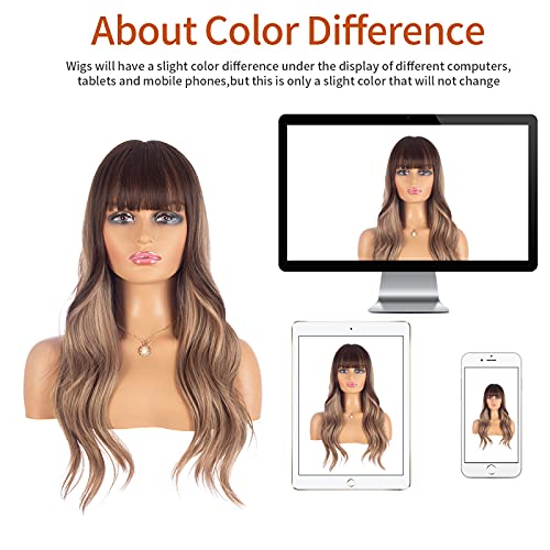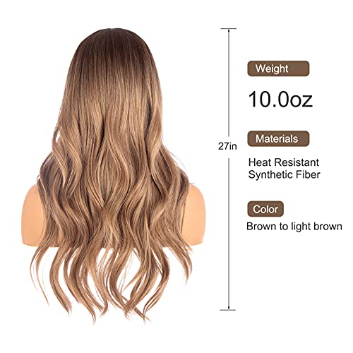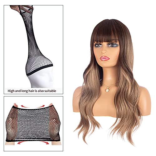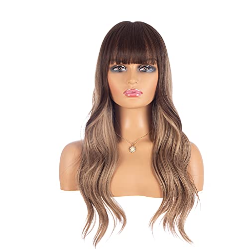 DILLARDS - باروكة بشعر طويل مجعد بلون بني ومظهر طبيعي وغرة أمامية من ديلاردز - شعر صناعي مقاوم للحرارة للحفلات التنكرية للنساء (45 سم)