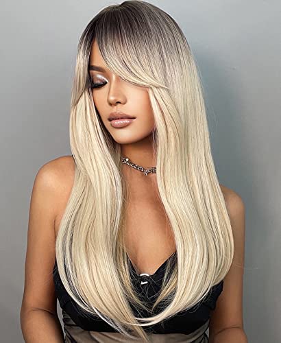 DILLARDS - ديلاردز شعر مستعار طبيعي متدرج مع غرة جانبية للنساء، مجموعة من الطبقات الاصطناعية مع جذور داكنة لحفلات العمل اليومية ولعب الادوار