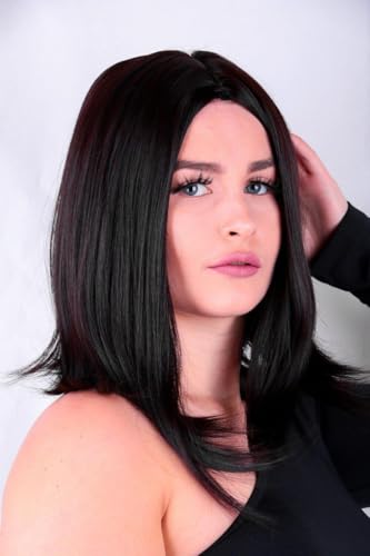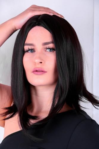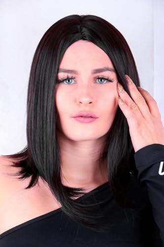 - مظهر طبيعي: باروكة مفرودة متوسطة الطول بلون أسود تتميز بتصميم متعدد الطبقات وخط شعر واقعي للحصول على مظهر أصلي وسلس