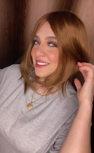 - ألياف صناعية فاخرة: ألياف صناعية عالية الجودة ومقاومة للحرارة تخلق شعر مستعار بني طبيعي المظهر مع نسيج متعدد الطبقات وتصميم متوسط الطول
