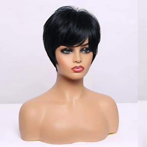 DILLARDS - باروكة شعر مستعار صناعي قصير متعددة الطبقات قابلة للغسل ومقاومة للحرارة من ديلاردز - أسود