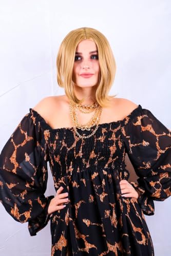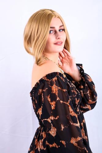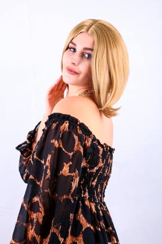 - مزايا التصميم: قصة بطول الكتف مع خيوط أشقر مستقيمة ذات طبقات بخبرة تحيط الوجه بشكل جميل