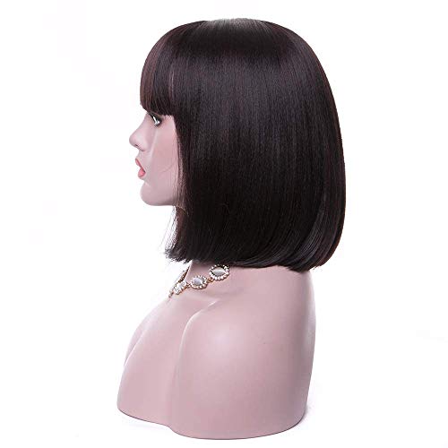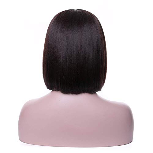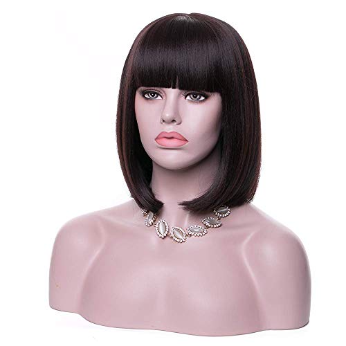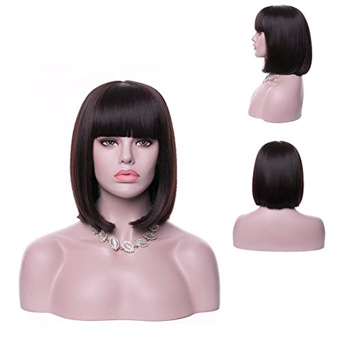 DILLARDS - باروكة صناعية قصيرة ملساء بنية بتسريحة بوب وبغرة مسطحة وكاب مجاني للإطلاله الطبيعية والأزياء التنكرية المفعمة بالألوان من ديلاردز ويجوود للنساء، 35 سم