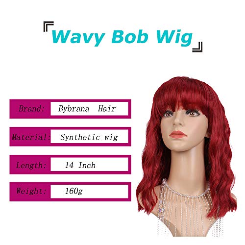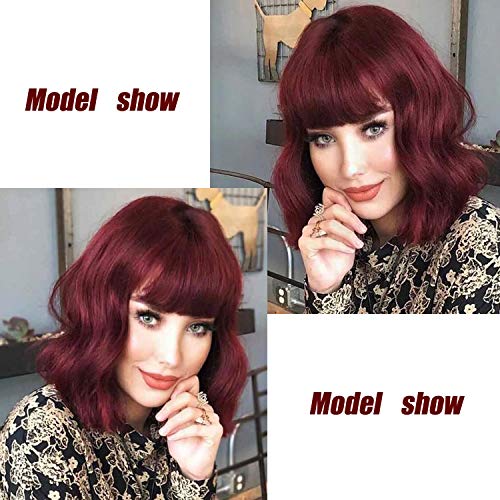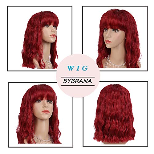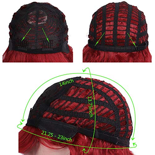 DILLARDS - باروكة بشعر صناعي قصير مموج مع غرة بمظهر طبيعي للنساء من ديلاردز، بطول 36 سم، لون أحمر نبيتي