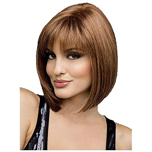 DILLARDS - باروكة صناعية قصيرة من ديلاردز بلون بني رائع للنساء