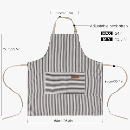 DILLMAN - مريلة مطبخ قابلة للتعديل - مريلة للرجال والنساء بتصميم مخطط ناعم بجيبين من ديلمان