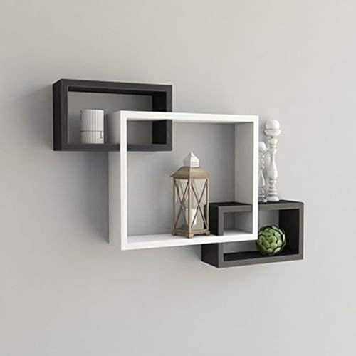 Dime Arts Shoppee - مجموعة ارفف جدارية عائمة سداسية الشكل مكونة من 3 قطع من دايم ارتس، ارفف جدارية عائمة للمنزل وغرفة المعيشة - مجموعة من 3 قطع | ارفف خشبية انيقة تثبت على الحائط (اسود وابيض)