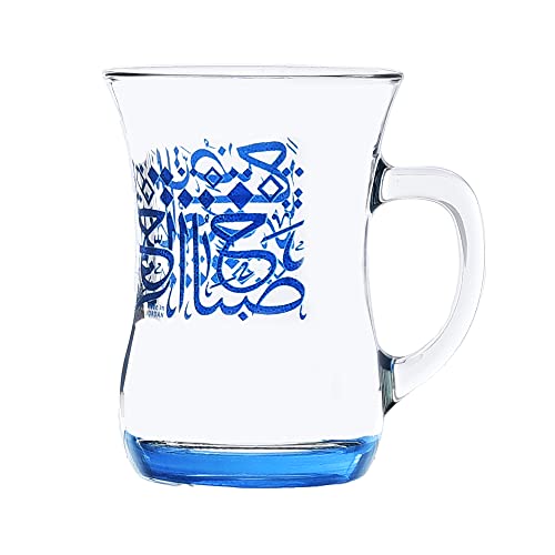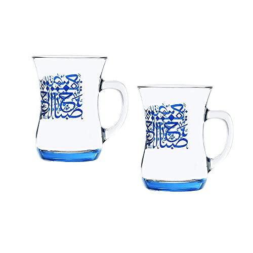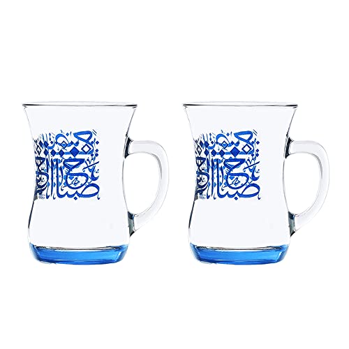 Dimlaj - طقم شاي تركي زجاج متين بطباعة كلمات بلون ازرق من ديملاج، قطعتين، عدد القطع: 1