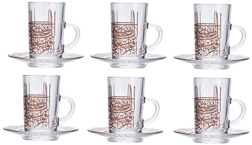 Shafa By Dimlaj - طقم مكون من 6 أكواب شاي وأطباق من دملاج (لون ذهبي)