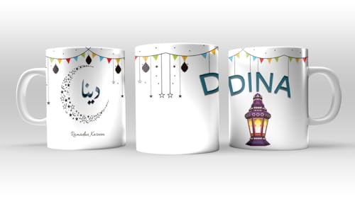 Generic - مج رمضان للشاي والقهوة من دينا مج - هدية للاحتفال بشهر رمضان، مج قهوة مع اسم، (تصميم 994