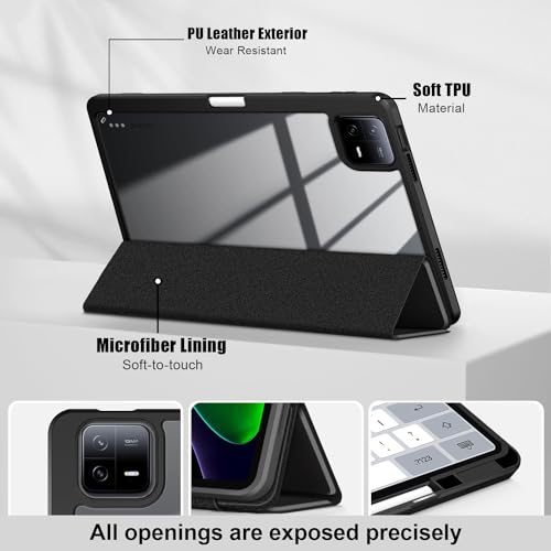 DingGuagua - حافظة حماية مضادة للصدمات بجزء خلفي صلب شفاف وحامل قلم لجهاز تابلت شاومي مي باد 6/ مي باد 6 برو 11 بوصة (2023) من دينجواجوا (لون أسود)