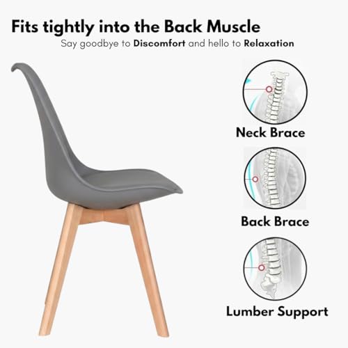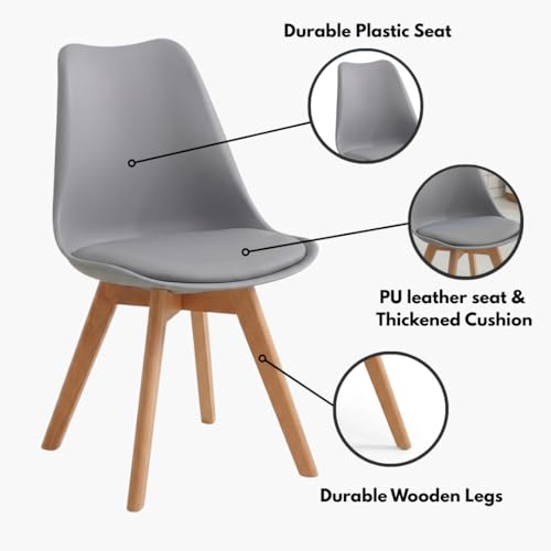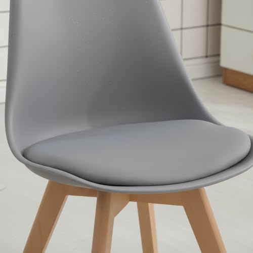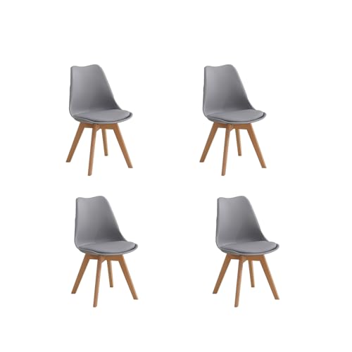 Meta Furniture - كراسي طعام ذات أرجل خشبية مع مخدة بنمط مبطن متعددة الألوان لغرفة المعيشة، كرسي لغرفة النوم، أثاث مكتب منزلي (4 قطع، رمادي)