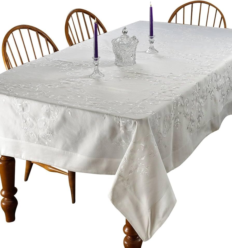 مفرش سفرة – مقصوص ليزر، تصميم فندقي فاخر، مقاس جامبو 140×210 سم، خامة متينة لا تتأثر بالغسيل، يناسب 6 إلى 8 كراسي F