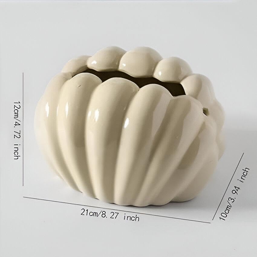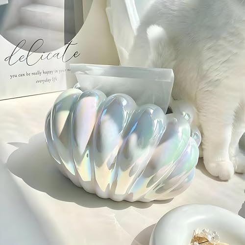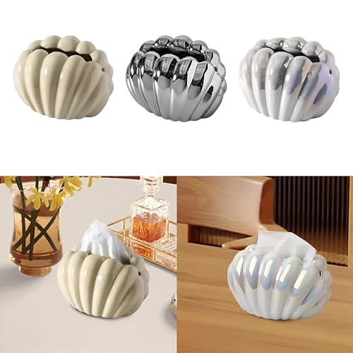 - غطاء علبة مناديل مستوحى من الصدفة مع صورة ظلية مستديرة ولطيفة تضفي جوًا جديدًا على شاطئ البحر إلى أي غرفة؛ مصنوع من السيراميك ليشبه الغلاف الصغير الآمن، ويعمل كتخزين عملي للمناديل ولمسة زخرفية على طاولات القهوة أو طاولات الطعام أو الأرفف.