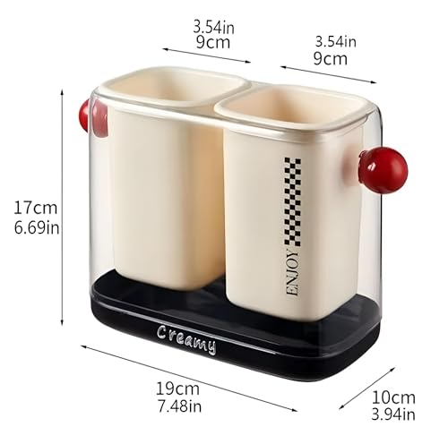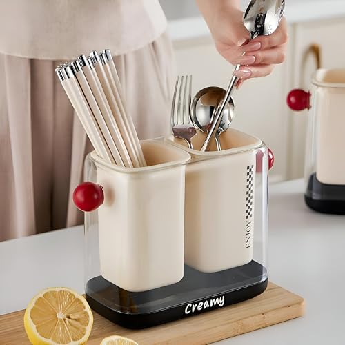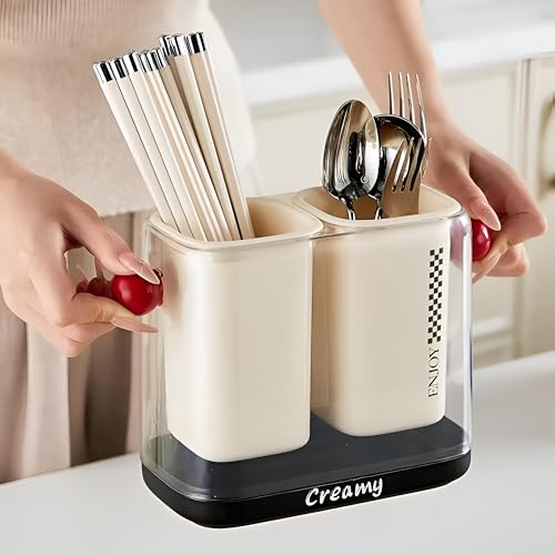 Generic - مجموعة ادوات تناول الطعام - حامل ادوات مائدة فريد من نوعه مع مساحات تخزين مزدوجة ونظام تصريف، اكواب قابلة للفصل لسهولة النظافة ومناسبة للاواني المسطحة والسكاكين واكثر من ذلك، لمسة نهائية شفافة انيقة