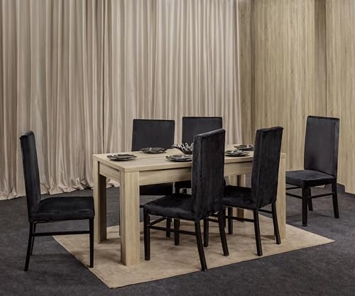 Generic - سفرة طعام 6 مقاعد – طاولة MDF مع 6 كراسي بتنجيد قطيفة فاخر لون اسود