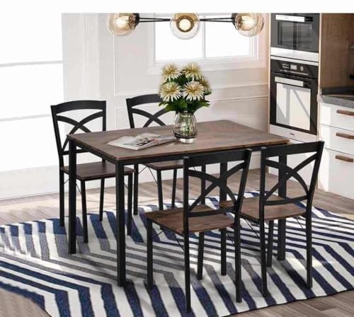 Generic - طقم طاولة طعام مع كراسي، خشب ام دي اف وستيل، بني وأسود، 120×80×80 سم (4)