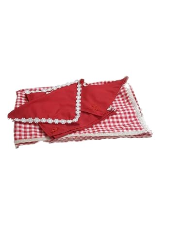 Generic - طقم مفرش سفرة مع 6مناديل تقديم طعام مزينة بالجبير، من أخرى، قماش، احمر، مستطيل، 150x250 سنتيمتر