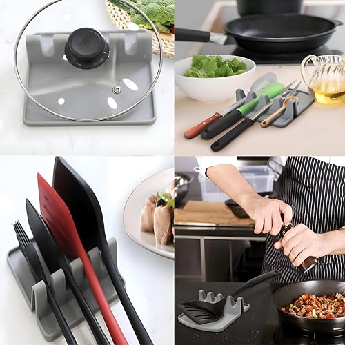 Generic - صينية تقديم - مسند ملاعق من السيليكون مزود بأقسام مقسمة، مناسب لأدوات تناول الطعام ومنظم مقاوم للحرارة للاستخدام المطبخي اليومي