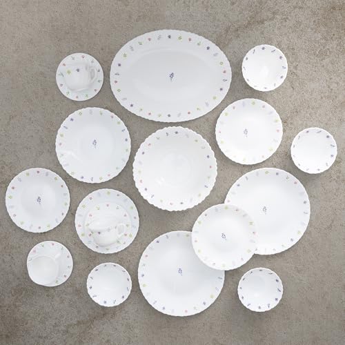 Generic - طقم عشاء مكون من 38 قطعة لـ 6 اشخاص، بزخارف زهور مصغرة متناثرة، اركوبال - ابيض