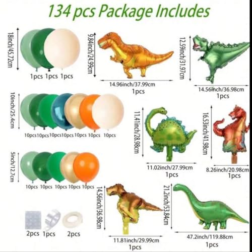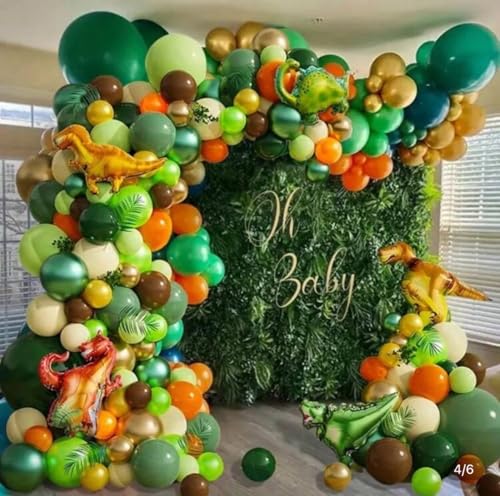 Generic - مجموعة أقواس بالونات على شكل ديناصور مكونة من 135 قطعة، بالونات لاتكس خضراء وزرقاء وما إلى ذلك و6 قطع من بالونات فيلم ألومنيوم على شكل ديناصور، مثالية لحفلات أعياد الميلاد وديكورات الحمام ومستلزمات تز
