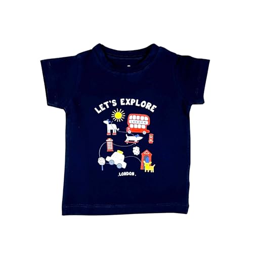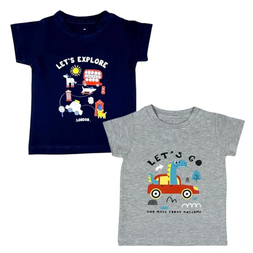 Baby Co. - تي شيرت رمادي بطبعة ديناصور وتيشيرت مطبوع عليه Let's Explore كحلي (عبوة من قطعتين) أولاد