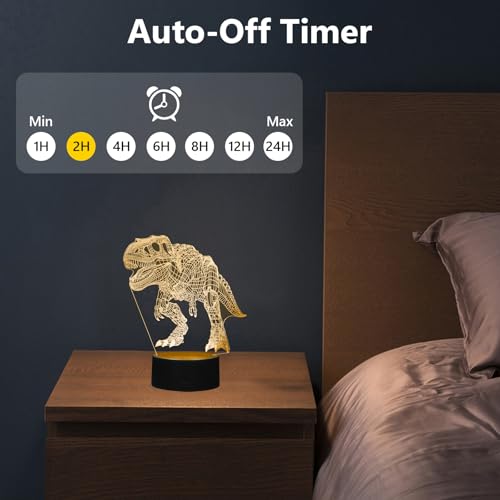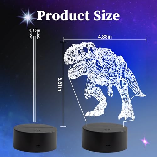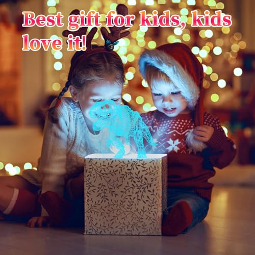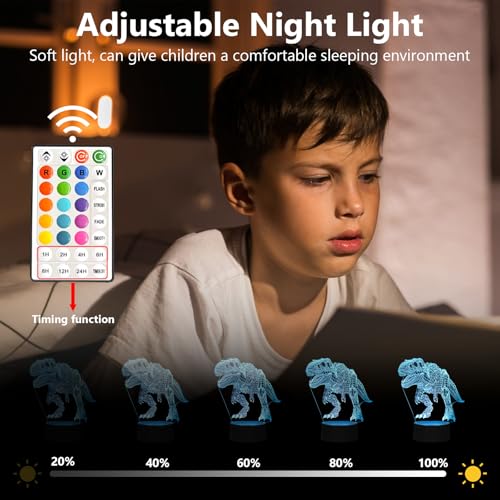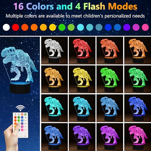 oboist - مصباح ليلي ليد ثلاثي الأبعاد بتصميم ديناصور للأولاد، مصابيح غرفة بطابع ديناصور، مصباح وهمي بصري مع جهاز تحكم عن بُعد، مثالي لديكور غرفة الأطفال ومحبي الديناصورات (روبوت تي ريكس)