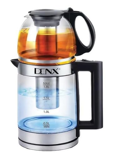 Generic - غلاية كهربائية مزدوجة 1500 واط من دينكسس مع فلتر شاي قابل للازالة، غلاية سعة 1.8 لتر ووعاء شاي 1.0 لتر، ماكينة صنع شاي عالية السرعة، موزع مياه ساخن متعدد الوظائف، غلاية تربو، DX2015