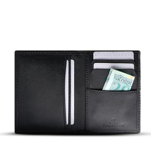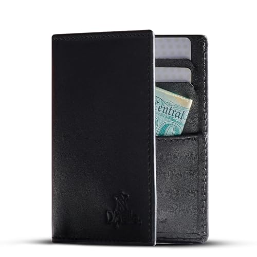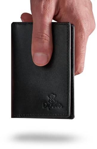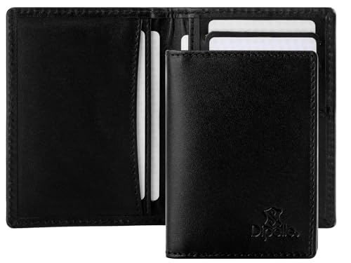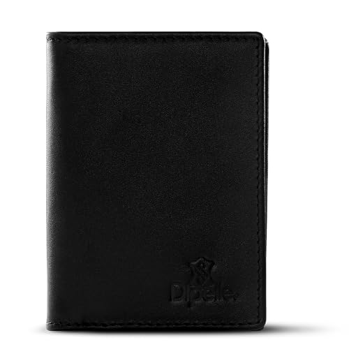Dipelle - محفظة من ديبيل مصنوعة من جلد توب جرين للرجال، بتصميم بسيط باللون الأسود، نحيفة مع سعة 8 بطاقات