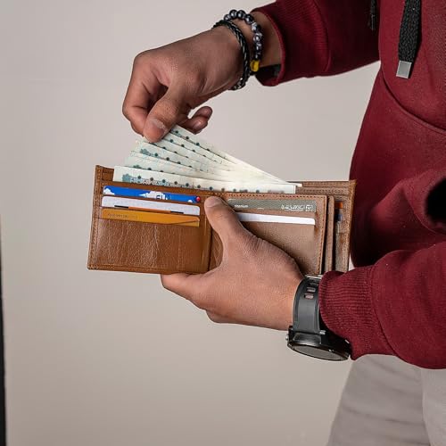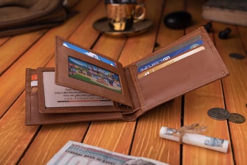 Dipelle - محفظة Dipelle للرجال من الجلد الطبيعي ثنائية الطي مع نافذتين للبطاقة الهوية | | متينة ذات سعة إضافية تتسع لـ 15 بطاقة هافان
