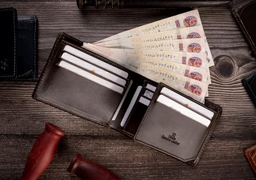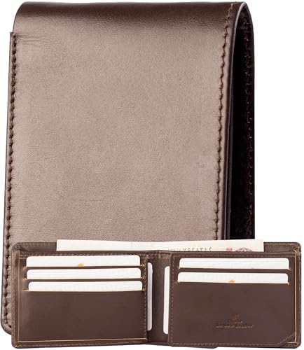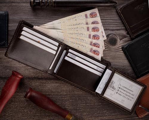 Dipelle - محفظة من الجلد الطبيعي للرجال ديبيل™ بتصميم أنيق ثنائي الطي ونافذة لبطاقة الهوية في صندوق هدايا | - جلد طبيعي بني