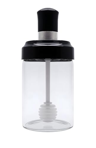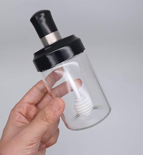Generic - برطمان عسل وملعقة من الزجاج الشفاف - مانع للغبار، سعة تخزين 300 مل، ارتفاع 12.7 سم لعرض العسل بشكل مريح وجميل