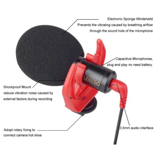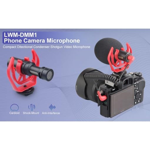 Generic - ميكروفون التقاط صوت اتجاهي، نمط قطبي قلبي الشكل، كاميرا مدمجة وحامل هاتف ذكي، تسجيل منخفض الضوضاء لإنتاج الفيديو وتدوين الفيديو