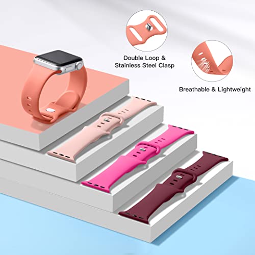 Dirrelo - اساور رياضية من السيليكون اللين بديلة لاسوار ساعة ابل 38/40/42/44 ملم متوافقة مع ساعة اي ووتش سيريز 3/5/6/4/2/1/SE ملائمة للجنسين من ديريلو، 4 قطع, 38mm/40mm S/M, سيليكون
