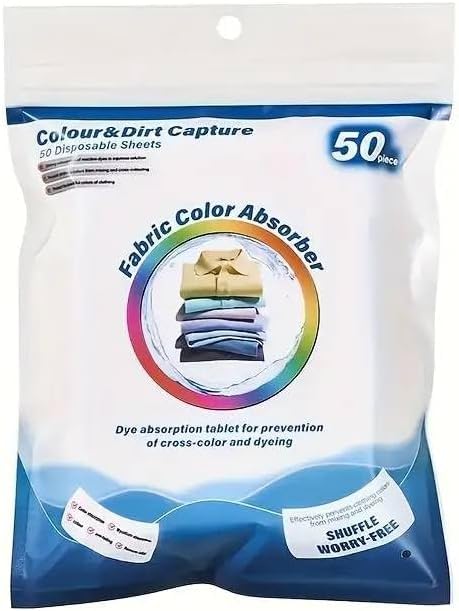 - محتويات العبوة: ستحصل على عبوة واحدة تحتوي على 50 ورقة غسيل ماصة للألوان. مقاس الملصق: 10 × 14 سم.