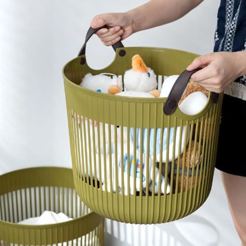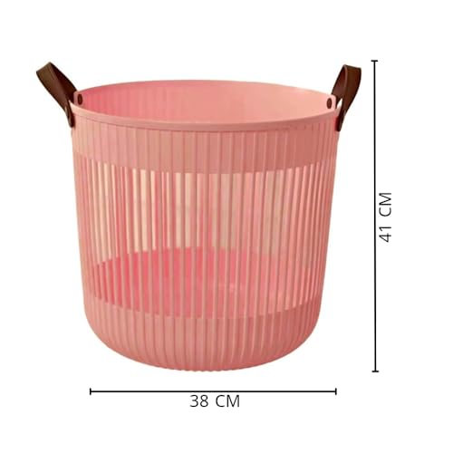 Generic - سلة تخزين الملابس المتسخة - حجم كبير - للغسيل والالعاب والبطانيات ومستحضرات التجميل ولوازم التنظيف - من البلاستيك المقوى ومقابض جلد - متعددة الوظائف (برتقالي)