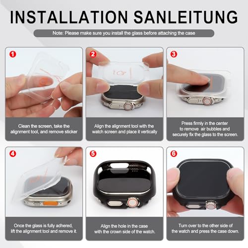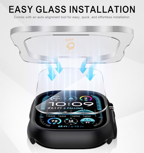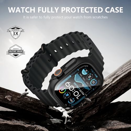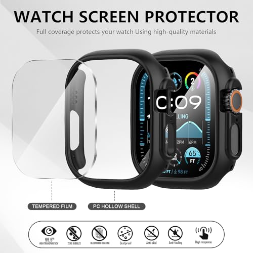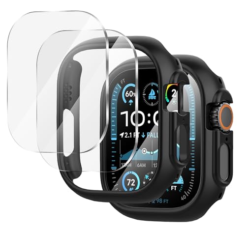 Diruite - ديروت حافظة حماية 2+2 لساعة ابل الترا/الترا 2 49 ملم من الزجاج المقوى × 2، حافظة حماية شاملة HD من البولي كربونات، 2 × 2، اسود (HD)