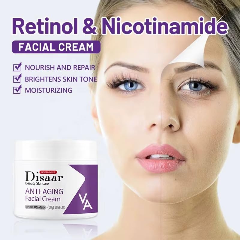DISAAR Beauty - كريم مضاد للشيخوخة من ديسار 120 غرام، كريم مرطب لتبييض الكولاجين والريتينول لتجديد شباب البشرة مع النياسيناميد للترطيب وتفتيح البشرة