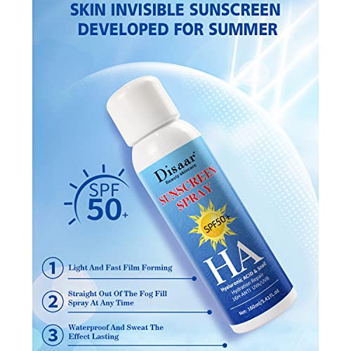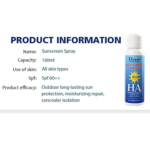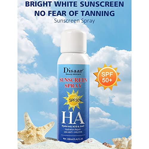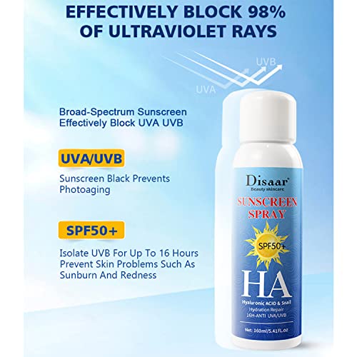 DISAAR Beauty - سبراي واقي من اشعة الشمس بعامل وقاية من اشعة الشمس 50+، معزز بحمض الهيالورونيك والحلزون من ديسار بيوتي، يصلح ويرطب البشرة ويحميها من الاشعة فوق البنفسجية الطويلة والمتوسطة، سعة العبوة 160مل/5.41 اونصة