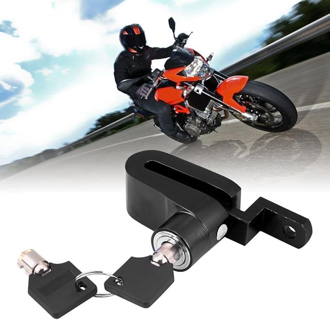 Generic - قفل فرامل قرصي، فرامل قرصية للسكوتر والدراجات النارية، قفل عجلة متين مضاد للسرقة مع دعامة تثبيت للدراجات النارية والدراجات والسكوتر (اسود)